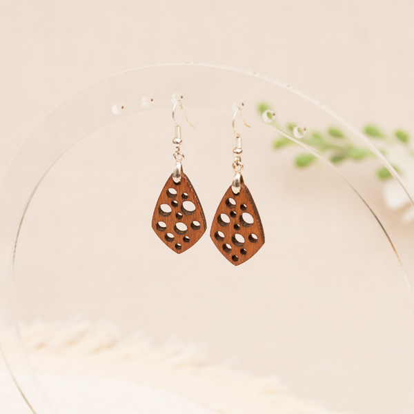 Les boucles d’oreilles en bois, c’est le plaisir de porter un produit éthique et élégant.