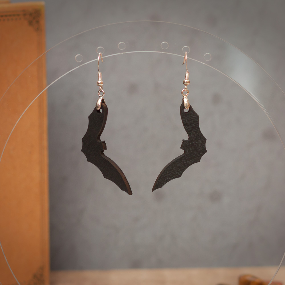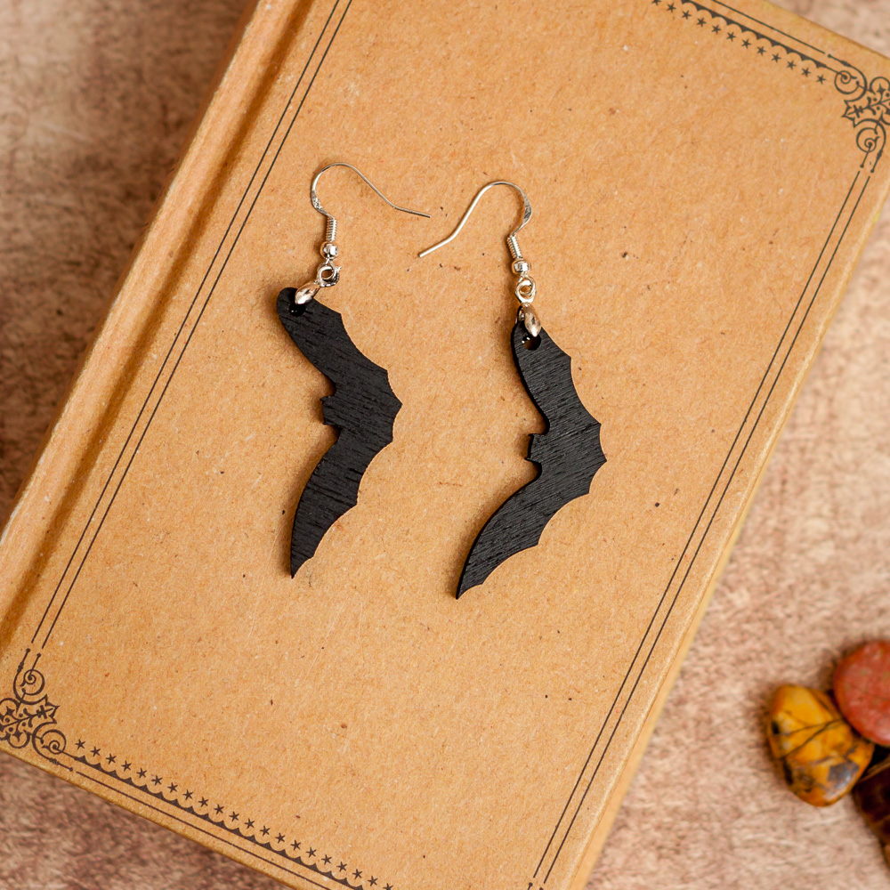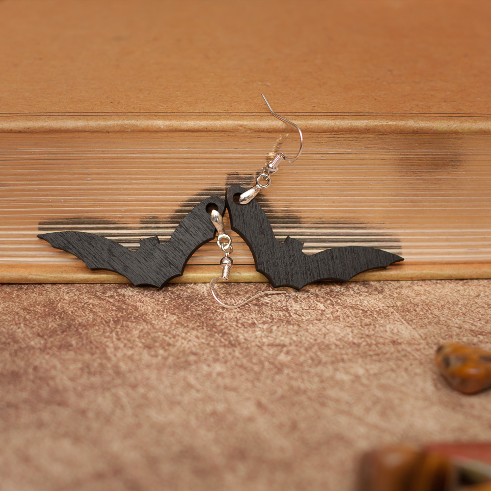 Si vous cherchez un petit accessoire pour Halloween, ces boucles d’oreilles en forme de chauve-souris sont fabriquées en bois et peintes à la main.