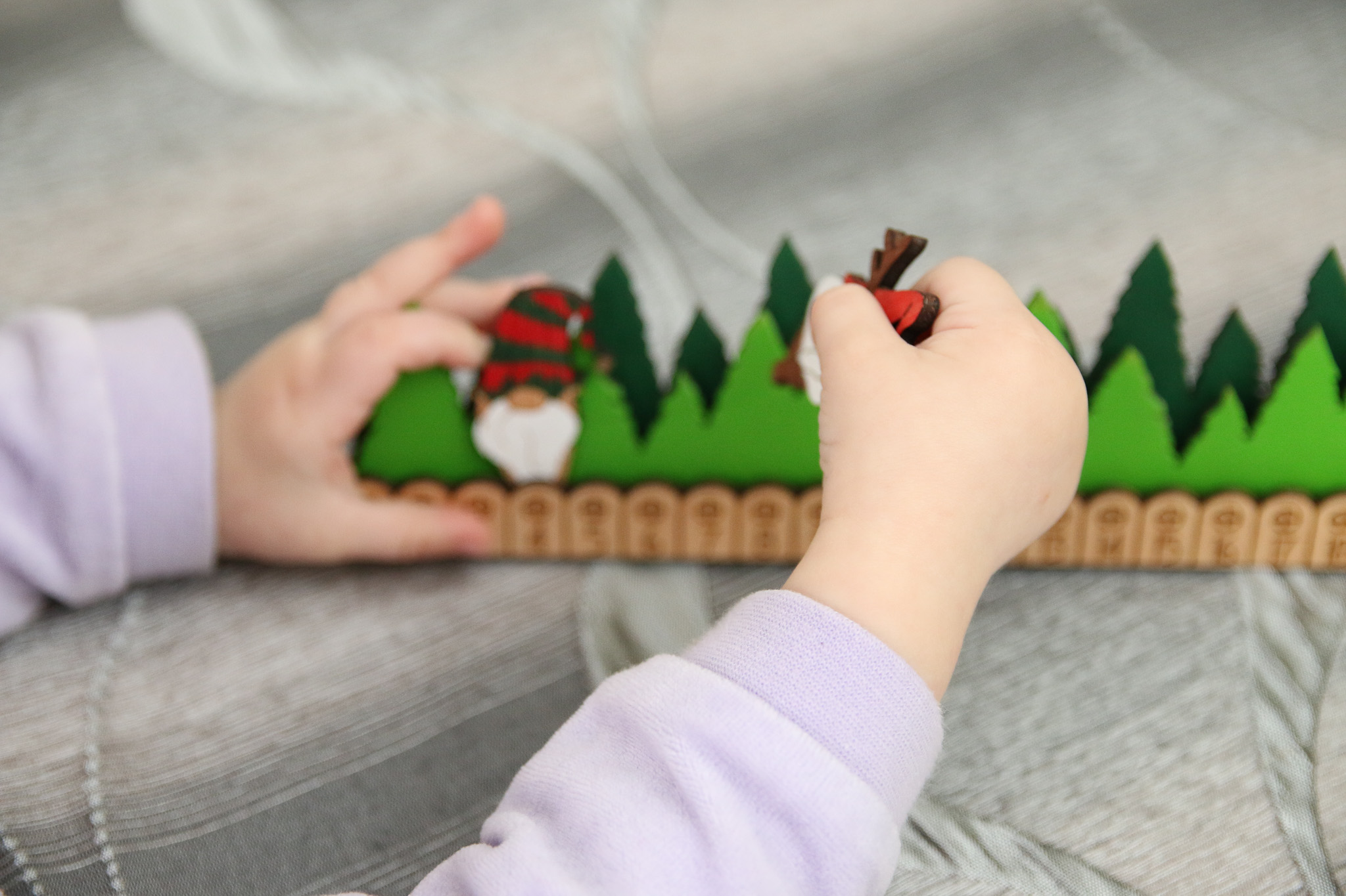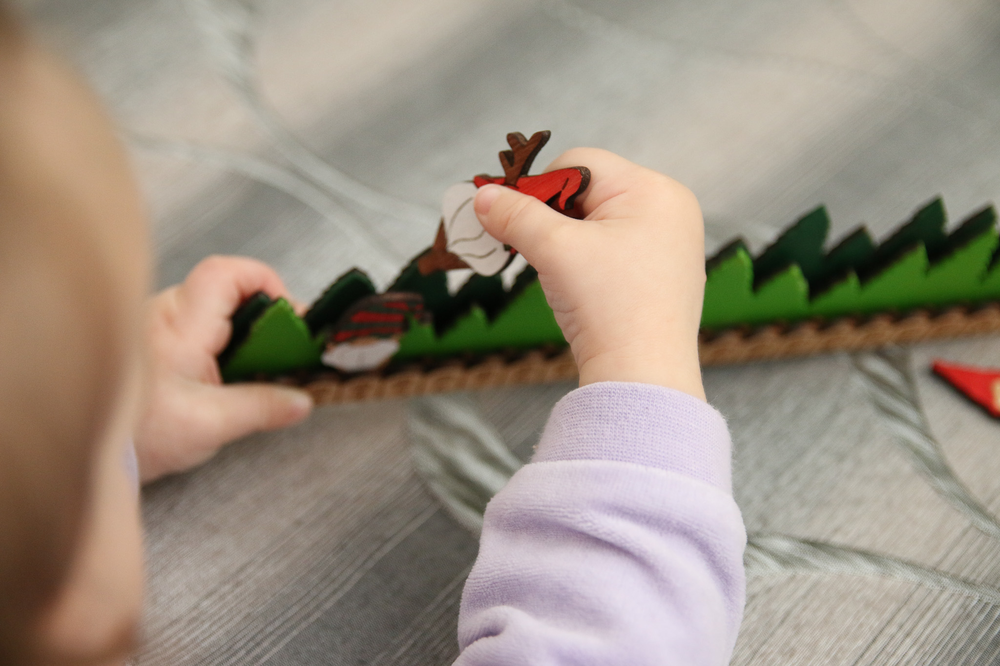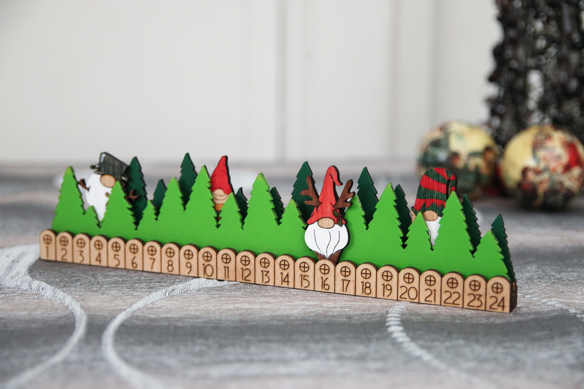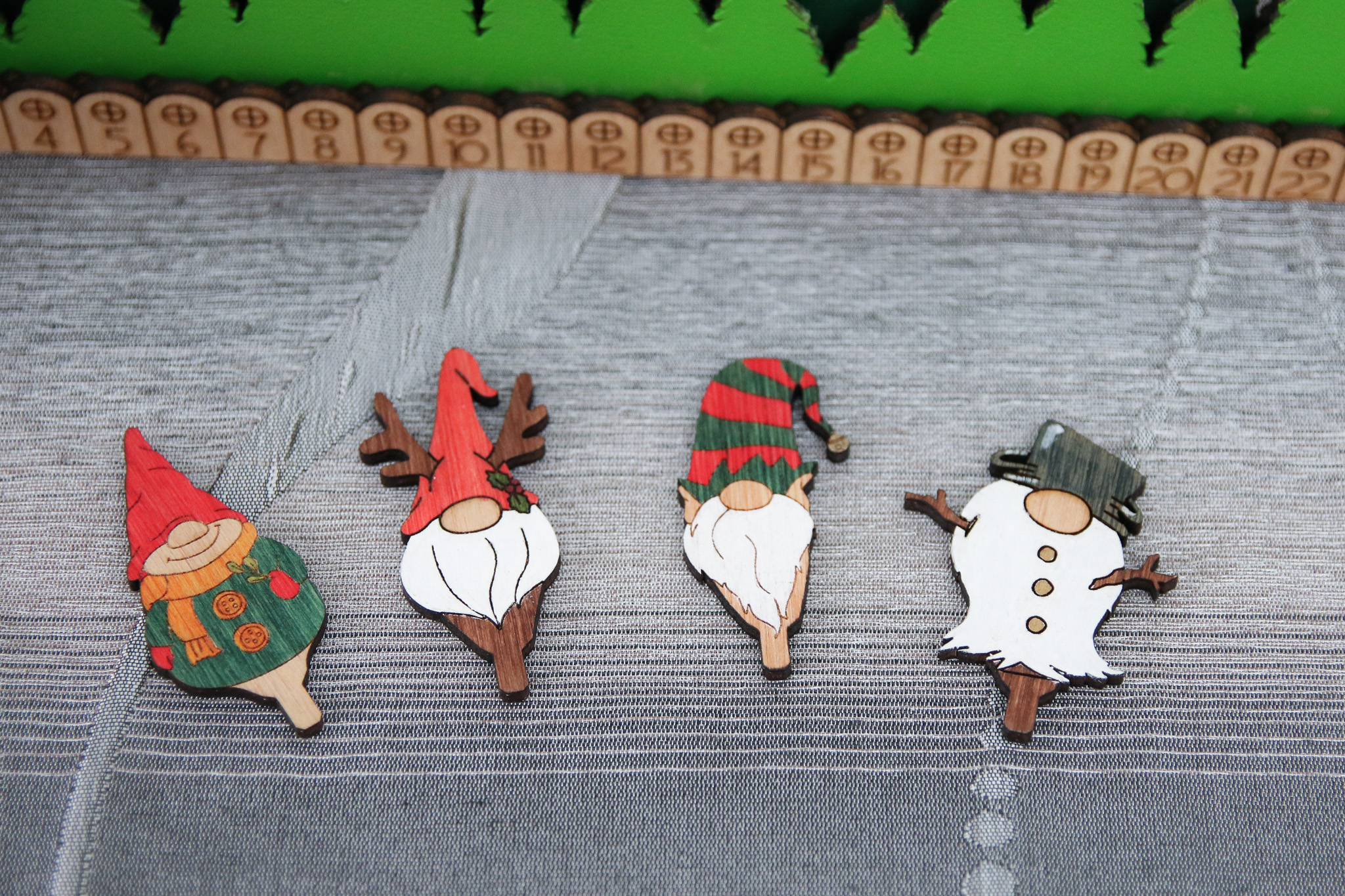 Un calendrier de l’avent réutilisable, écologique et local! Les différents éléments sont peints à la main.