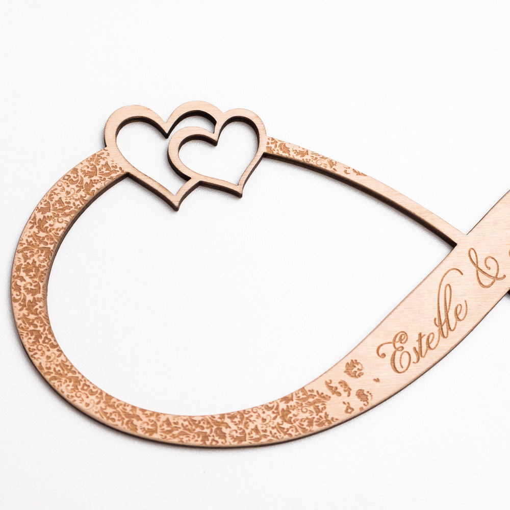 Vos prénoms sont gravés au centre du symbole de l’éternité et la date de votre choix y est intégrée.